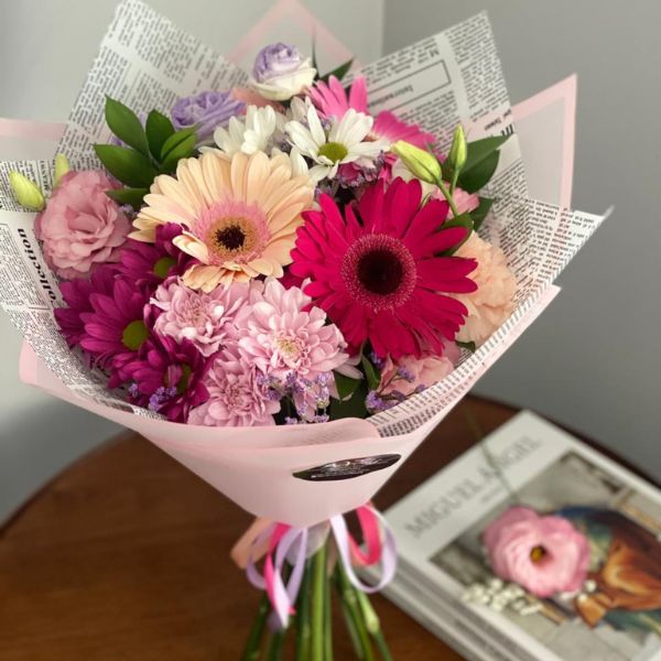 Un bouquet con una selección de flores de la temporada, lleno de dulzura, color y sensibilidad, creado para celebrar el amor en su forma más natural.